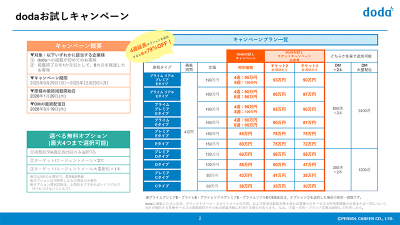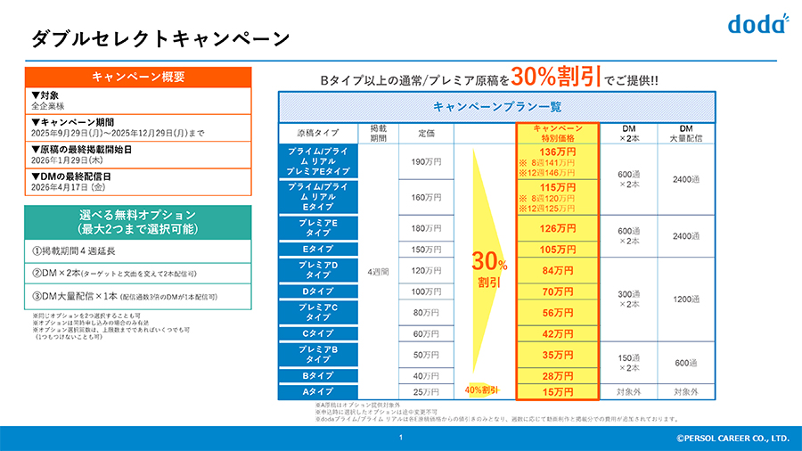 dodaで求人広告掲載をお考えの企業様にお得なキャンペーンのご案内です。