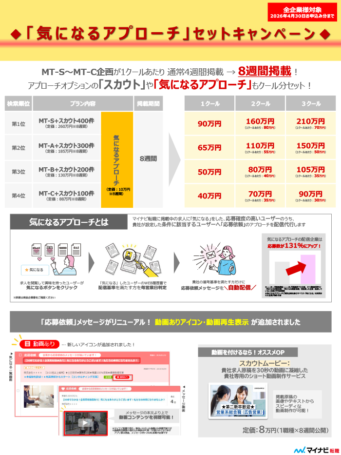 「マイナビ転職」掲載のご相談、キャンペーンの詳細・お申込みは