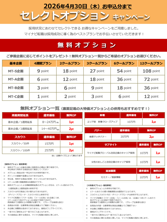 採用状況に合わせてセレクトすることができるお得なキャンペーンです!